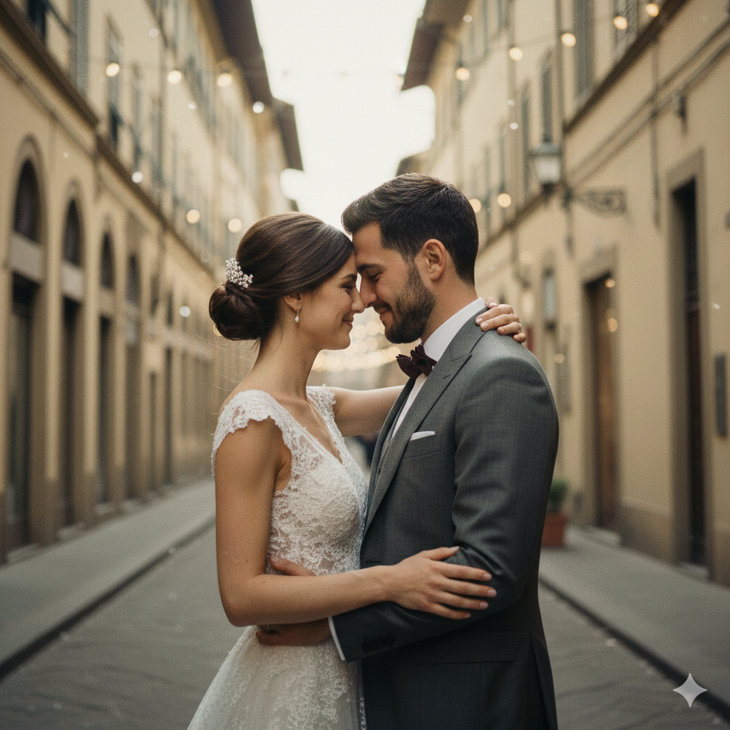 Die Toskana ist dabei weit mehr als nur Kulisse. Sie ist Inspiration. Ihre Farben, ihre Stille und ihre Texturen fließen ganz selbstverständlich in meine Bildsprache ein – ob bei Brautporträts, Paarshootings oder Editorials. Ich wähle Orte mit Intuition und künstlerischem Blick, damit jedes Bild Raum hat, zu atmen.